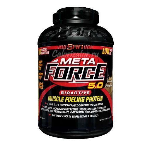На рынке спортивного питания появляются протеиновые смеси из нескольких видов белковых источников – изолятов и гидроизолятов. Компоненты тщательно подобраны, порции идеально выверены. Продукты компании SAN отличаются высоким качеством используемых ингредиентов, мульти-составной протеин San Meta Force 5.0 выпускается в нескольких вариантах вкусов (calorizator), например Chocolate Rocky Road. Вместе с упаковкой продаётся мерная ложка для облегчения приготовления белкового коктейля.