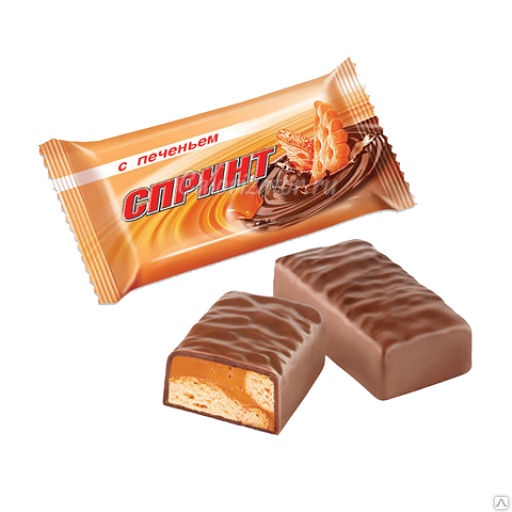 Разнообразные низкокалорийные десерты, полезные батончики-мюсли и сухофрукты редко заменяют настоящее лакомство – конфеты. Спринт с печеньем – это начинка из мягкой молочной карамели с кусочками печенья в глазури из молочного шоколада (calorizator). Конфета имеет внушительные размеры, поэтому для получения удовольствия обычно хватает одной штуки.