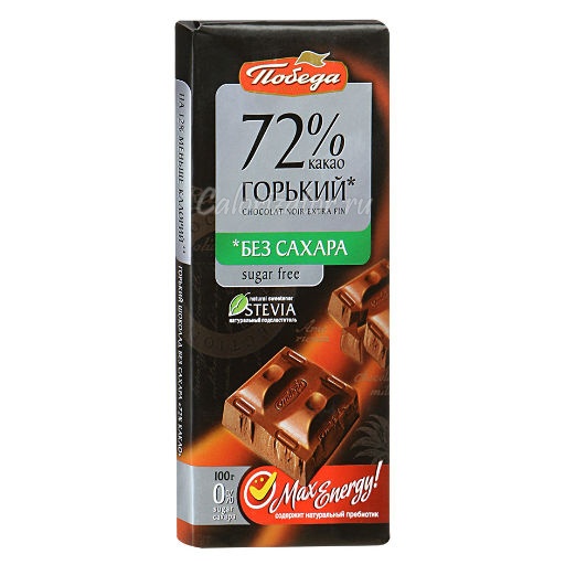 Калорийность горького шоколада Победа вкуса 72% со стевией
